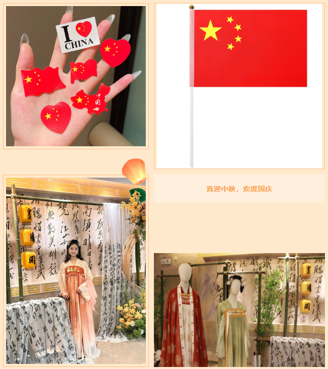 入住即贈小國旗+國慶主題貼畫,連續入住兩晚還可免費體驗漢服穿搭!
