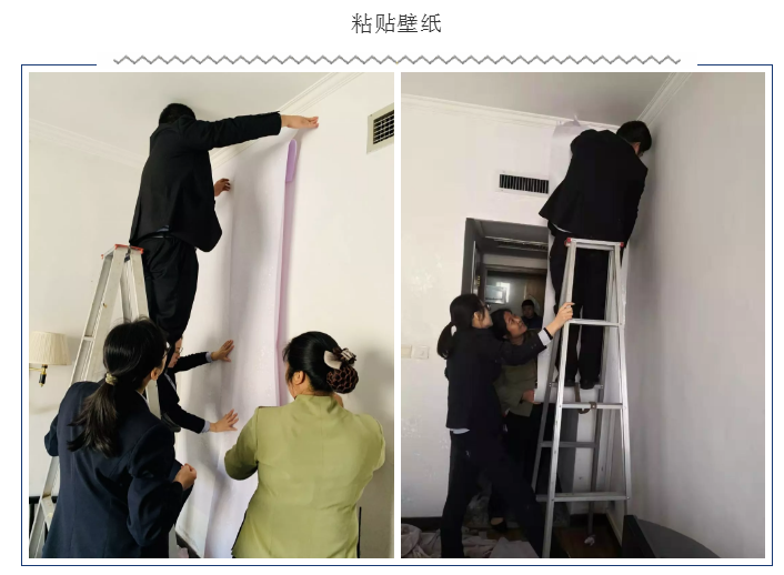 同時,為了倡導修舊利廢,節約資源,美化客房環境,客務部利用接待間隙,協同采購組考察購買了一種自粘壁紙,并嘗試對部分客房墻面及房間壁柜底部進行美化,取得了立竿見影的效果,既節約了人力物力,又保證了墻面美觀,性價比也很高。