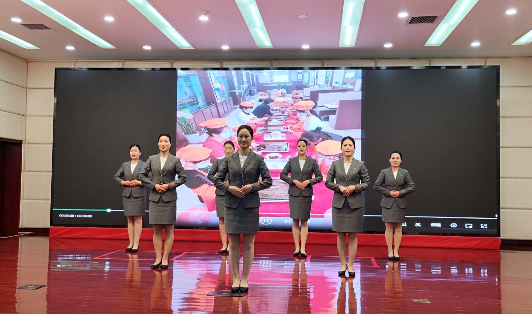 大會的第二部分是公司各部門及子公司的服務禮儀風采展示。公關銷售部、客務部、餐飲公司、康體中心、財務部、商貿公司、保衛部、物業公司等部門輪番上陣,將各自工作中最美的一面,展現給大家,充分體現了西北飯店員工的精神面貌和團隊凝聚力。