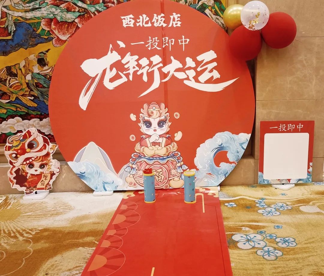 春節,大廳里張燈結彩,喜氣洋洋。有投壺的、有套圈的、有猜燈謎的、有拍照打卡的,到處都是祥和美好的畫面。當一盞盞花燈送到來自天南海北的孩子們手里,紅紅的燈光照亮了一張張天真無邪的笑臉,旁邊的爺爺奶奶爸爸媽媽個個笑容燦爛。孩子們一句句“謝謝阿姨!”“祝阿姨新年快樂!”,讓我們感到無比的幸福與滿足!初四上午,我站在前臺遠遠看見旋轉門口一個10歲左右的男孩背著包,手持一盞我們的同款龍燈,后邊的媽媽拖著行李箱,剛剛還在思考這是剛到店的賓客還是返回的賓客,孩子媽媽就向我打招呼,說她們又回來了。原來前天住在飯店,昨天去了華山,今天專門回來選擇繼續住在西北飯店。男孩的媽媽還告訴我,這個龍燈孩子太喜歡了,一直好好保護著,今天已經第三天了。聽了孩子媽媽的話我心里美滋滋的!