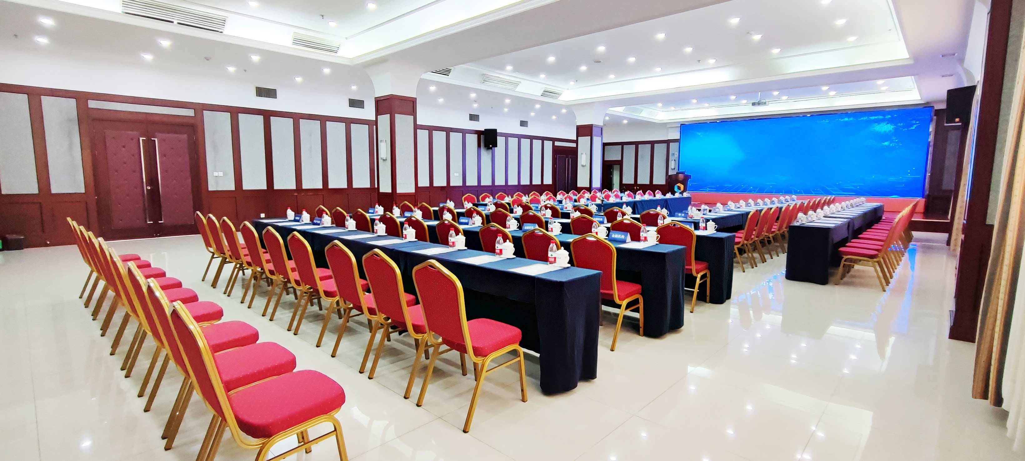 飯店擁有20多個(gè)大中小型會(huì)議室(廳),功能齊全,設(shè)備先進(jìn),分別可容納30——600人,滿足各種會(huì)議、培訓(xùn)、社會(huì)活動(dòng)的需要,并能隨時(shí)根據(jù)顧客需求進(jìn)行會(huì)場(chǎng)布局。